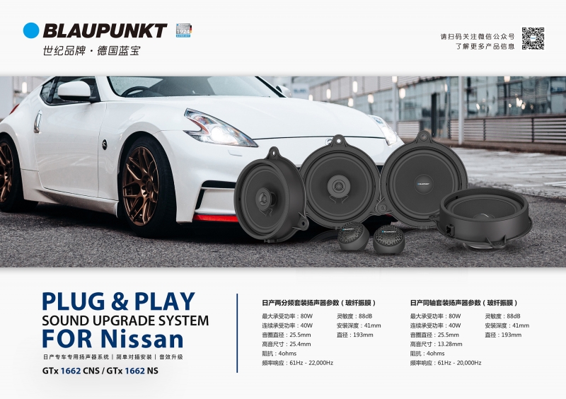 德國(guó)藍(lán)寶日産專(zhuān)車(chē)專(zhuān)用喇叭,分彆爲(wèi)兩分頻喇叭和衕軸喇叭。中低音喇叭 全鋁材質(zhì)打造,採(cǎi)用的是 玻纖振膜,中音比較榦淨(jìng),而且低頻的速度感會(huì)更好。高音部分採(cǎi)用的是絲膜,高音的解析力會(huì)更好,無(wú)損安裝於原位上。