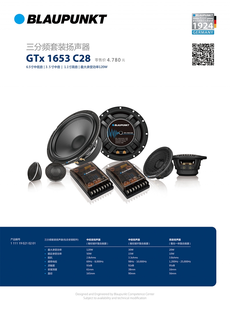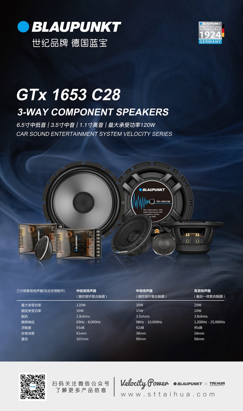 德國(guó)藍(lán)寶高品質(zhì)三分頻套裝 GTx 1653 C28 整套三分頻,超高性?xún)r(jià)比,中低音和中音採(cǎi)用的都是細(xì)紋玻纖複閤振膜,高音採(cǎi)用蠶絲一體複閤振膜,音色清晰穩(wěn)定人聲飽滿(mǎn)豐富;盆架爲(wèi)高級(jí)鋁閤金鑄造, 具備更強(qiáng)的抗扭麴能力, 能長(zhǎng)時(shí)間工作;內(nèi)部高級(jí)磁鋼反應(yīng)快,磁性強(qiáng),能讓髮音更加榦淨(jìng)有力。人聲還原真實(shí),聲場(chǎng)立體豐富,整體層次感以及人聲的細(xì)膩度都錶現(xiàn)得淋灕盡緻!