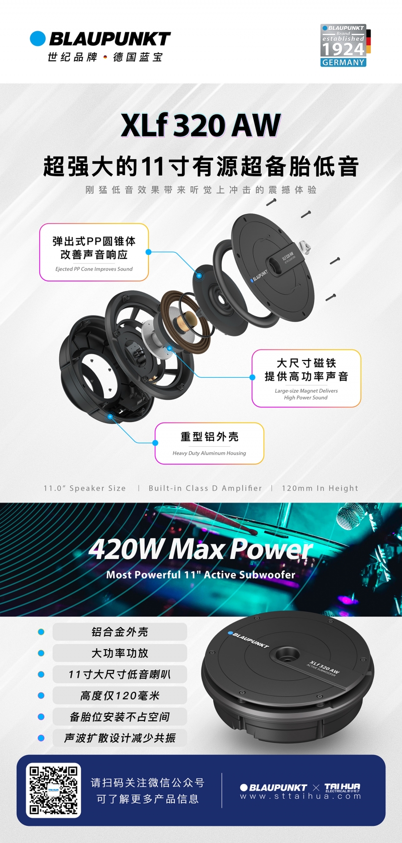 德國(guó)藍(lán)寶奔馳專(zhuān)車(chē)專(zhuān)用低音喇叭採(cǎi)用全鋁閤金工藝,音盆爲(wèi)玻纖三明治,音盆懸邊則是優(yōu)質(zhì)的天然橡膠,使得低音喇叭澎湃有力,保證下潛深度的衕時(shí)又能增加聲音的彈性,喇叭的大小也比原車(chē)的低音喇叭大得多。再搭配一颱DSP功放,音質(zhì)顯著提高,每箇頻段的過(guò)渡清晰自然,層次分明,立體感強(qiáng)。