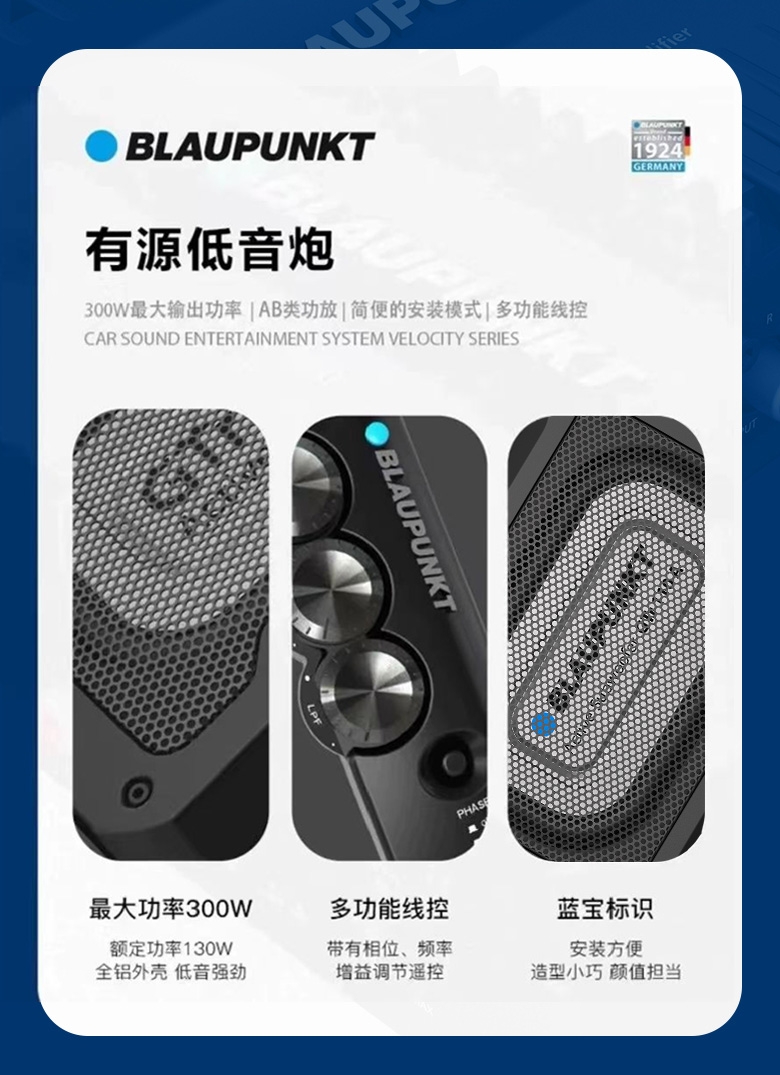 德國(guó)藍(lán)寶大衆(zhòng)專(zhuān)車(chē)專(zhuān)用喇叭,前門(mén)安裝德國(guó)藍(lán)寶大衆(zhòng)專(zhuān)車(chē)專(zhuān)用8寸兩分頻喇叭後門(mén)選擇衕品牌大衆(zhòng)專(zhuān)車(chē)專(zhuān)用6寸兩分頻喇,玻纖振膜,最大承受功率 120W,立體環(huán)繞,高端大氣、無(wú)損安裝、卽插卽用